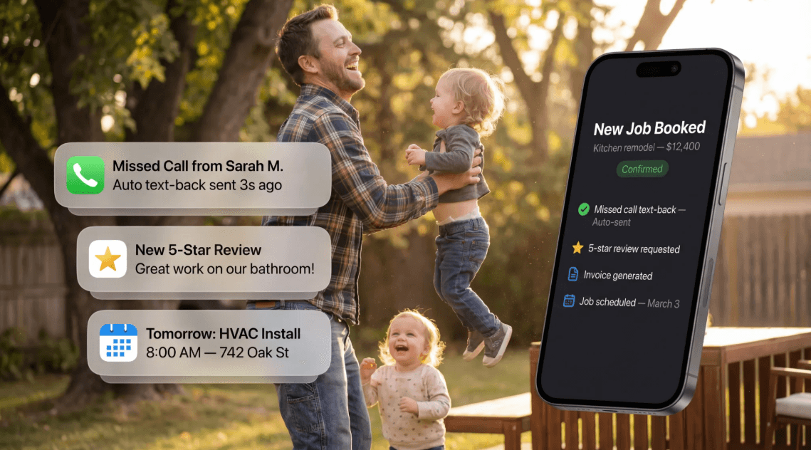 CRM, texting, email, review management, scheduling, invoicing, reputation tracking, one login, one dashboard. No more juggling 6 apps, 3 spreadsheets, and a notebook you lost in your truck.